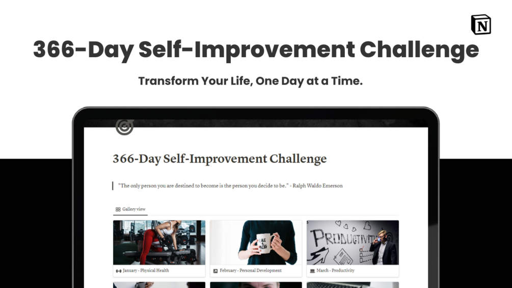 Elevate Your Life: 366-Day Self-Improvement Challenge Notion Template